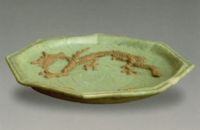 圖片名稱(chēng): 龍泉窯青釉堆龍紋八角盤(pán)