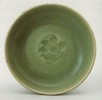 說 明: 碟底心印山茶花。資質(zhì)良、釉色潤,呈黃綠色,細冰裂紋。
