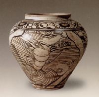 圖片名稱: 磁州窯白地褐彩龍鳳紋罐