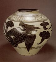 圖片名稱: 磁州窯白地黑花鳳紋罐