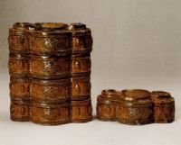 說 明: 除盒底外通體施釉,胎質(zhì)灰白松軟,釉薄光亮有細小開片.