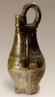 說 明: 壺體呈包裹狀,淡紅陶胎,胎質(zhì)堅硬.上白色化妝土,施褐綠色釉.