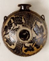 圖片名稱: 黑釉剔粉雕劃花扁壺