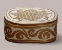 說 明: 枕為腰圓形,枕面為水波紋,枕側(cè)飾圈枝紋。