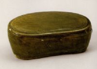 說(shuō) 明: 胎土堅(jiān)細(xì),呈褐灰白色半陶瓷胎,施深褐色綠釉。
