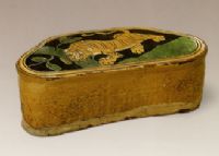 圖片名稱: 三彩釉剔地刻虎紋三瓣花形枕