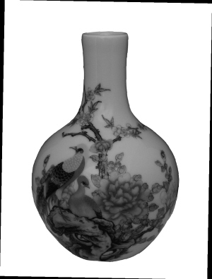 雍正御制琺瑯彩瓷出戟尊。上下四道開光,其中肩部四開光為胭脂彩和藍(lán)料彩山水畫;腹部四開光為花鳥和西洋人物。此瓷可謂集燒造工藝、繪畫藝術(shù)、捏塑藝術(shù)等于一體的琺瑯彩瓷藝術(shù)精品,為國內(nèi)外所罕見。