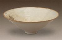 說 明: 半斗笠,敞口,斜壁,淺圈足.通體施卵白釉,釉色光潤(rùn),胎薄質(zhì)精.