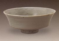 說(shuō) 明: 折腰,斜壁,敞口,小圈足。內(nèi)壁印菊瓣紋一周。胎骨潔白。