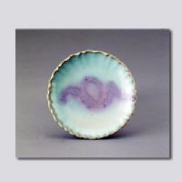 首都博物館藏。花瓣口,淺腹,圈足。盤(pán)內(nèi)施月白色釉,盤(pán)心釉上有一塊不規(guī)則的紫斑。盤(pán)外壁施半截釉,向下垂流。(關(guān)于元代鈞窯)