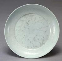 盤(pán)敞口,淺弧壁,圈足。胎骨堅(jiān)細(xì)潔白,內(nèi)外施釉,釉層較厚,呈失透狀,釉面瑩潤(rùn),釉色白中泛青,恰似鵝卵色澤,故名“卵白釉”。足內(nèi)露胎無(wú)釉。