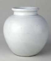 罐口微撇,短頸,圓腹,腹以下漸收,平底。底無(wú)釉。胎、釉潔白細(xì)膩。