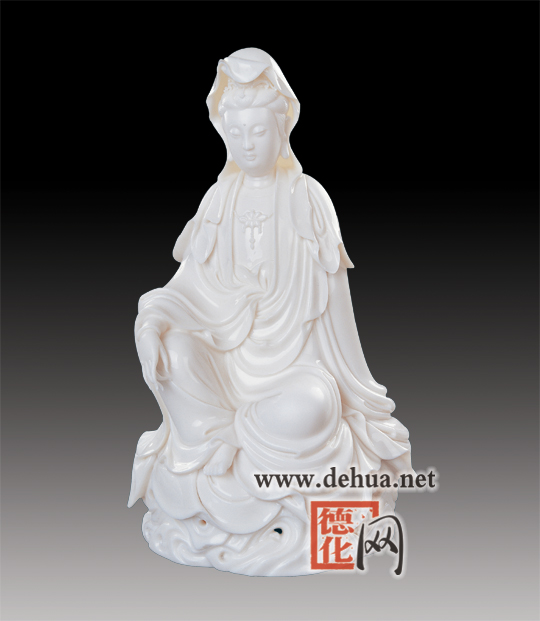 賞析:作品系仿“何來觀音”的上乘之作。作者在繼承何朝宗觀音瓷雕工藝的基礎(chǔ)上,結(jié)合德化“玉脂瓷”燒制工藝,使得整個(gè)作品表面濕潤如玉,造型栩栩如生。