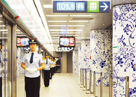 奧運(yùn)支線北土城站具有“青花瓷”特色的出入口。圖片來(lái)源:CCTV