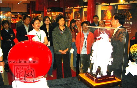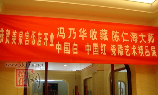 此次陳仁海大師將作為“2008奧林匹克美術(shù)大會(huì)”的特邀嘉賓,組委會(huì)力邀對(duì)陳仁海大師有著深入研究和對(duì)其作品執(zhí)著收藏的馮乃華先生在酒店大堂精品廳舉辦藏品展,慶祝美泉宮飯店開(kāi)業(yè)慶典。展出其收藏的陳仁海大師的中國(guó)白、中國(guó)紅瓷雕藝術(shù)精品29件,其中既有價(jià)值連城的《日出江花》,也有被評(píng)為中國(guó)民間國(guó)寶的《攜手共榮》,還有反映奧運(yùn)題材的《夢(mèng)回大唐》、《點(diǎn)亮世界》、《丹鳳還巢》等。參加酒店開(kāi)業(yè)的嘉賓對(duì)陳仁海大師的中國(guó)白、中國(guó)紅作品贊不絕口,嘉賓們非常感謝組委會(huì)說(shuō):“您讓我有幸觀賞陳仁海大師精妙絕倫的瓷雕作品,對(duì)您們的遠(yuǎn)見(jiàn)我非常欽佩”,“未料想在北京發(fā)現(xiàn)了一位現(xiàn)代瓷圣!實(shí)在是太棒了!”“陳仁海是一位能夠找到今后藝術(shù)之真諦的人,是可以囑托藝術(shù)之將來(lái)的人”。很多嘉賓從這里進(jìn)去,懷著好奇和欣賞;從這里出來(lái),感到滿足和景仰,認(rèn)為陳仁海大師的瓷雕藝術(shù)代表了當(dāng)今中國(guó)瓷雕藝術(shù)的最高水準(zhǔn),是奉獻(xiàn)給奧運(yùn)會(huì)真正的國(guó)禮。德潤(rùn)企業(yè)集團(tuán)總裁助理、酒店事業(yè)部總經(jīng)理蔡文輝先生十分感慨,他說(shuō):“陳大師的作品給我們酒店增光添彩,提升了我們酒店的文化水準(zhǔn),增加了飯店的奢華品質(zhì)”。