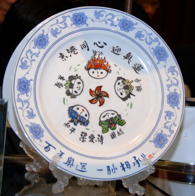 由本報與北京朝陽區(qū)人文奧運建設指揮部及香港學友社共同主辦的香港特區(qū)奧運瓷盤彩繪暨展覽活動,以中國的代表陶瓷工藝(china)來表達社會各界對2008年北京奧運會的寄語。10余名社會人士及60多名中小學生現(xiàn)場進行瓷盤彩繪,前來參加活動的有白發(fā)蒼蒼的老者,有蹣跚學步的幼童,也還有身坐輪椅的殘障人士,也不乏一家三代全體出動。