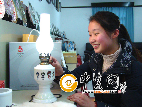 今年是奧運(yùn)年,奧運(yùn)瓷受青睞,悄然成為禮品新寵。圖為一名少女在江西省省陶研所禮品瓷銷售中心欣賞“奧運(yùn)福娃瓷燈”。 近日,景德鎮(zhèn)奧體瓷業(yè)有限責(zé)任公司生產(chǎn)的73款?yuàn)W運(yùn)陶瓷新品陸續(xù)在景德鎮(zhèn)奧運(yùn)瓷專賣(mài)店亮相,主要有項(xiàng)鏈、手鏈、耳環(huán)、掛件類、音樂(lè)瓷、文化擺件類、日瓷陶瓷類、雕塑類等種類,每一件瓷器都充滿了奧運(yùn)元素,充分展現(xiàn)了中國(guó)獨(dú)特的奧運(yùn)文化。