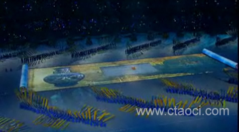1個(gè)多小時(shí)的文藝表演,畫(huà)卷中央鋪放著一張白紙,畫(huà)紙四周的綾子上,流淌著中國(guó)文化起源和發(fā)展的圖案,有巖畫(huà)、陶器和青銅器……《畫(huà)卷》表現(xiàn)了中國(guó)歷史文化的起源和發(fā)展:造紙術(shù)是中國(guó)古代四大發(fā)明之一,巖畫(huà)是中國(guó)先民留給后人的珍貴文化遺產(chǎn),陶器則更是一個(gè)具有中國(guó)代表的元素之一,瓷器也是“絲綢之路”上輸出國(guó)外的重要商口這一。