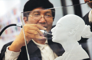 金全才在精心雕刻冠軍像。 (資料圖片)