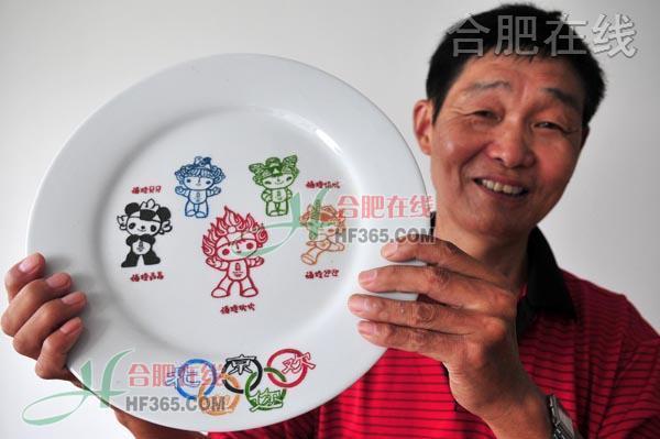 以刻刀為筆,以瓷盤玻璃為紙,五個奧運福娃神采飛揚,這差不多是艾明勝第四百件作品。 熟悉艾明勝的人叫他“民間藝術家”,因為很多年前他曾是安徽省美術家協(xié)會的會員,后來又因瓷雕和蛋刻而名聲大振。