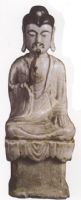 佛像為全迦坐式修禪,坐於方形臺座上,其髪冠,鬍鬚和眉目施釉下黑彩,其馀部位施