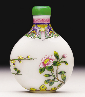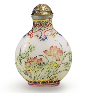 2005年,紐約佳士得舉辦專場拍賣會(huì)拍出一件清乾隆御制琺瑯彩西洋人物圖鼻煙壺,成交價(jià)為550萬元人民幣,成為迄今鼻煙壺拍賣的最高價(jià)。而當(dāng)年紐約蘇富比拍賣行以近393萬元的價(jià)格,拍出北京造辦處的乾隆粉彩銅胎鼻煙壺,成為鼻煙壺成交價(jià)的亞軍。