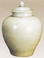 明代正統(tǒng)、景泰、天順三朝因朝廷禁燒彩瓷,即“空白期"。在此時(shí)期白瓷應(yīng)屬常見之物。此罐造型端莊,釉色瑩潤(rùn),雖素面無紋,但出土於王墓,封空白期瓷器,具有重要參考價(jià)值。出土數(shù)量較多。