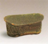 枕面為腰圓形,采用雕劃花工藝,枕面銘文用筆流暢生動,枕面外幫四周重飾邊圈線,并刻劃出簡潔向上的草葉紋,綠釉則先素燒胚胎,然后上綠釉烘烤,為兩次燒成。