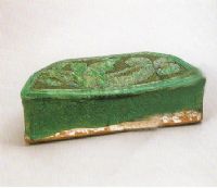 圖片名稱: 綠釉剔粉劃魚人紋六角形枕