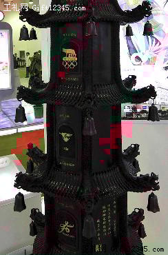 黑陶藝術品《奧運徽標塔》上的奧運會會徽。