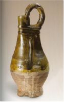 圖片名稱: 綠釉貼塑條紋雞冠壺