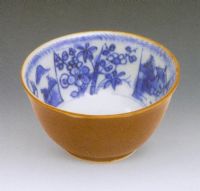 圖片名稱: 外醬釉內(nèi)青花山水花卉紋小碗