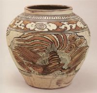 圖片名稱: 磁州窯白釉褐彩繪雙鳳紋罐