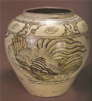 圖片名稱: 磁州窯白地黑花雙鳳紋罐