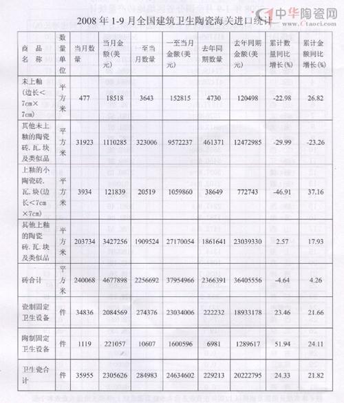 2008年1-9月全國(guó)建筑衛(wèi)生陶瓷海關(guān)進(jìn)口統(tǒng)計(jì)