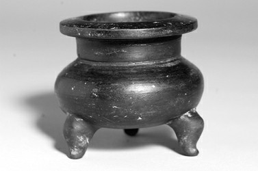 此尊元代黑陶三足爐的賣主是我熟識的,他知道我在收藏和研究香爐文化,特意從北方給我捎帶來。據(jù)說此物在山西長治附近出土,同時出土的還有一對黑陶貫耳瓶等。我看這個香爐品相完美,就把它留下了,盡管對于元是否存在黑陶我心有疑慮。