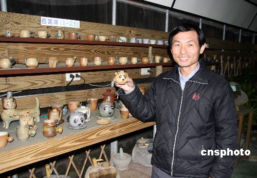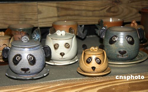 1月3日,臺北縣深坑鄉(xiāng)杯與壺博物館展示陶藝新作“熊貓杯”。這些作品為該博物館館長吳九巖所創(chuàng)作。