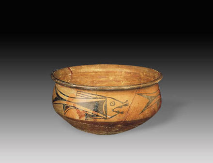 印紋陶摘要:印紋陶,在做好的陶坯上,趁未干前用印模將所需花紋在所定部位捺印上去后進(jìn)行燒制。依其燒制溫度的低高,又分為印紋軟陶和印紋硬陶。前者又有泥質(zhì)與細(xì)砂質(zhì)之分,多呈紅褐、灰白、灰等色,多流行于新石器時(shí)代晚期至商代以前;后者因燒制時(shí)溫度較高,故胎質(zhì)堅(jiān)硬,呈灰色,系在前者基礎(chǔ)新石器時(shí)代仰韶文化 魚紋彩陶盆上發(fā)展起來(lái),其出現(xiàn)年代約在商代以后。印紋陶的器形大多為日常生活用具,主要有甕、壇、罐、盂、缽、杯、盤、豆、簋、尊、□等器皿。制作方式為手制、模制和輪制。其紋飾是用印模在作好的坯胎上捺印出來(lái),最初只是出于防止器物變形,有加固陶坯的目的,故早期的印紋陶上多留有布紋、席紋和繩紋的痕跡,后隨技術(shù)的提高和人們審美能力的發(fā)展,逐漸使紋樣趨于豐富、精美。印紋陶的紋樣均為幾何形,主要有水波紋、米字紋、回紋、方格紋、編織紋、云雷紋。其紋飾多與器形相協(xié)調(diào),如曲折紋、云雷紋、回紋等較粗獷的紋樣,多用于甕、壇及較大的罐等。而小件的盂、缽等多飾以米字紋、方格紋等細(xì)密、秀美的紋樣,其中尤以商、西周、春秋時(shí)期的紋飾線劃均勻,結(jié)構(gòu)嚴(yán)謹(jǐn),且富有韻律感!∮〖y陶的裝飾工序,寄寓于器物脫坯后的壓印過程中,制作較為簡(jiǎn)單,且一旦制成模具,即使不會(huì)刻畫的人,也能從事捺印。因此,簡(jiǎn)單易行,適合大量生產(chǎn),故它在一定區(qū)域內(nèi)獲得極大發(fā)展,成為中國(guó)新石器時(shí)代晚期以來(lái)具有鮮明地域特征的一種制陶工藝。它主要流行于浙江、江蘇、上海、福建、廣東、廣西、臺(tái)灣、江西、安徽等省區(qū),盛行于商、西周、春秋,戰(zhàn)國(guó)時(shí)期隨著暗紋陶、彩繪陶器等的興起和迅速發(fā)展,而走向衰落,至漢代以后逐漸消失。