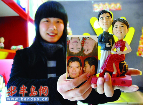 在香港中路一家禮品店內(nèi),一種真人陶土公仔情人節(jié)禮物,受到了許多時(shí)尚年輕人的青睞。據(jù)了解,這種個(gè)性化的情侶“公仔”(“公仔”主要是指玩偶的意思)。是量身定做的,只要顧客提供照片,制作者就能根據(jù)照片捏制出一個(gè)相似度極高的卡通形象,還可以自由選擇不同的服裝款式和場(chǎng)景。由于制作過(guò)程較為復(fù)雜,真人陶土公仔最便宜的也得300元,最高可達(dá)上千元。據(jù)店長(zhǎng)介紹,消費(fèi)人群多集中在30歲以下的年輕人。這種真人的公仔也叫“立體人面公仔”,就是自己的克隆。