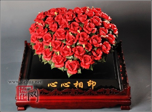 巧奪天工的玫瑰花朵艷麗迷人,鮮紅的花瓣足以亂真……工藝美術(shù)大師徐才提先生制造的陶瓷藝術(shù)玫瑰花“心心相印”在情人節(jié)熱銷。陶瓷玫瑰制作工藝復(fù)雜,常開(kāi)不敗,寓意“永恒的愛(ài),永恒不變的玫瑰誓言”。