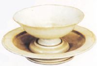 由托和盞兩部分組成,通常由托承碗盞配套使用。此器為茶具。此件盞托完整,為北宋典型器。