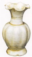 花瓣形口,直頸微撇,瓜棱形長(zhǎng)圓腹,圈足外撇,裹外施釉;ò晷慰,主要流行於宋代,各窯都有燒造。此瓶釉色白中泛黃青,明凈瑩澈,具有景德鎮(zhèn)窰的特點(diǎn)。