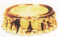唇口,中間為凸起平面供研磨,以儲墨。硯邊貼塑一周共二十個蹄足,上飾凸弦敘。釉呈青褐色,釉面熒潤。最具特色的是在一側(cè)置一封圓筒狀斂口小盂,應(yīng)為插筆或儲水之用。此器為唐代青瓷文具的 精品。