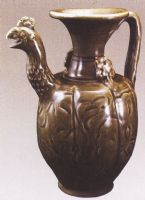壺腹呈瓜棱狀,並刻有牡丹花紋,流作鳳首狀。通體施青釉。耀州窰是北方青瓷名窯,始燒於唐,歷經(jīng)五代,到北宋時發(fā)展到其歷史的高峰,此時的青瓷以其犀利流暢的刻花、豐富多彩的紋飾和晶瑩溫潤的青釉相互結(jié)合,相的益彰,形成了獨特的藝術(shù)風格。