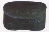枕呈腰圓形,採(cǎi)用剔、刻花的技法,枕面飾有蓮荷游鴨紋,體施綠釉。此器為北宋定窯的產(chǎn)品。定窯為宋代五大名窯之一,主燒白瓷,綠釉器也是品種之一,但數(shù)量極少。