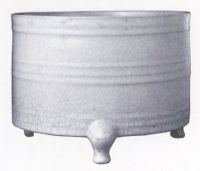 器仿漢代陶奩的造型。飾有弦敘五道,通體施青釉,釉有細(xì)小開片。此奩形體古樸端莊,氯韻素雅,釉色滋潤,製作極為精緻。為汝窯中的珍品,原為清宮珍藏,保存完好。