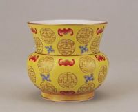 圖片名稱: 黃地紅蝠金彩團(tuán)“壽”字渣斗