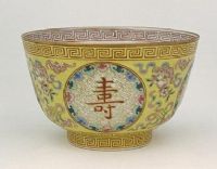 圖片名稱(chēng): 黃地粉彩開(kāi)光“萬(wàn)壽無(wú)疆”碗