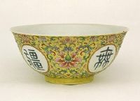 圖片名稱: 黃地粉彩勾蓮開光“萬壽無疆”碗
