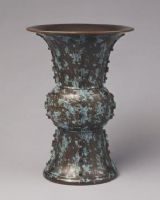 此件瓷尊無論造型還是顏色均刻意模仿青銅器,達(dá)到了使人僅憑肉眼無法辨別是瓷還是銅的地步,這種釉色是乾隆時(shí)期的新創(chuàng)釉色。
